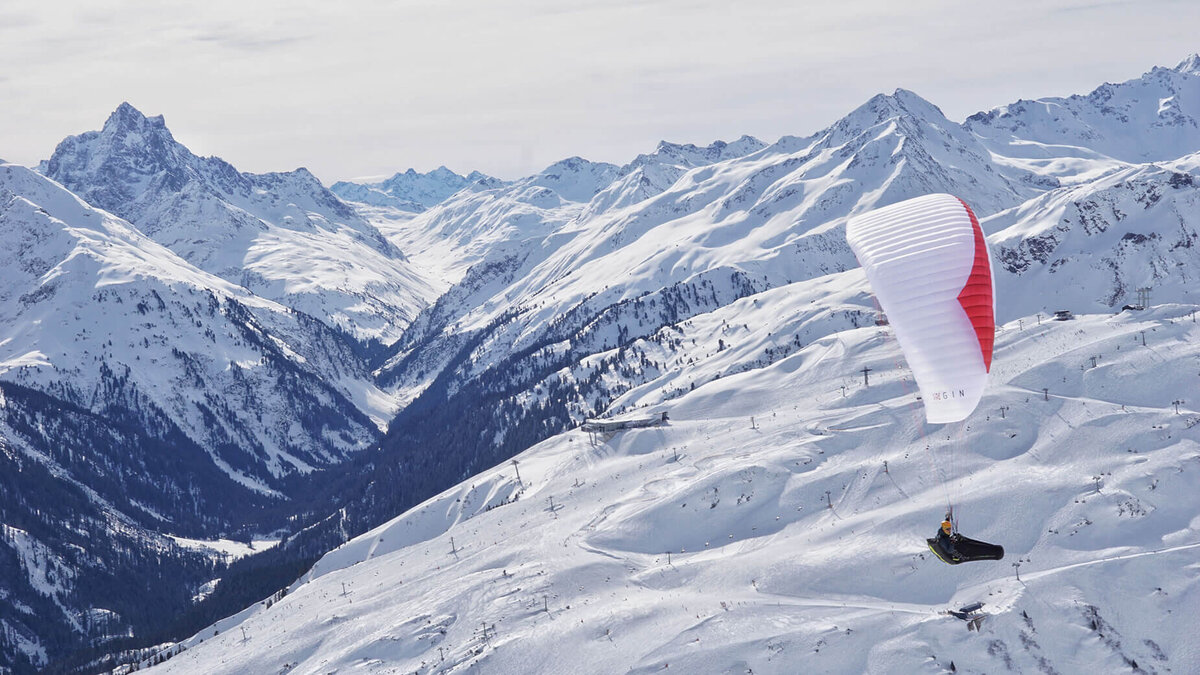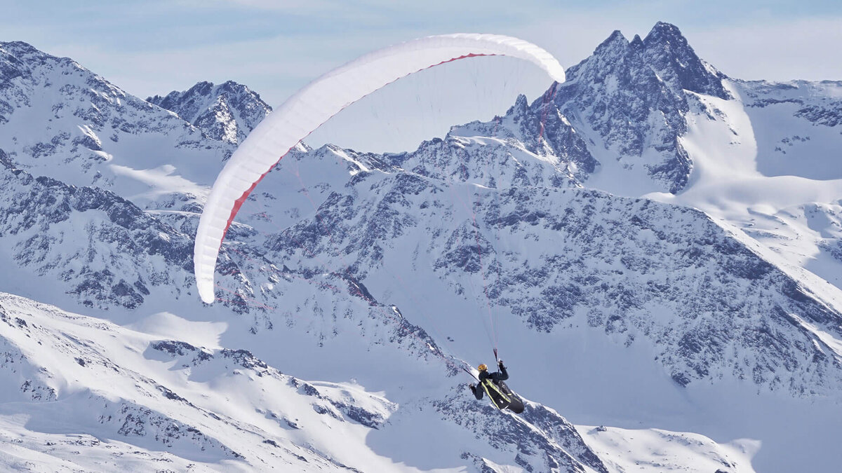 Ein ganz besonderes Erlebnis: Tandem-Gleitschirmflüge über die schneebedeckte Bergwelt eröffnen Ihnen eine Perspektive, die nur wenige erleben – der Winter von oben. (Basierend auf Aktivitätsangeboten vor Ort)